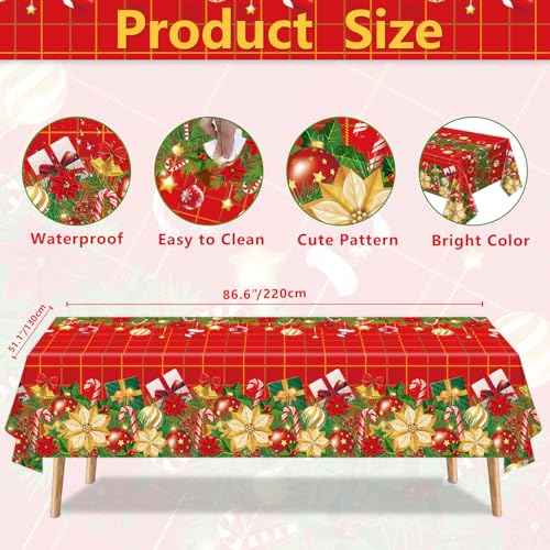 Package includes: you will receive 4 pack Christmas Flowers Tablecloth, red christmas theme tablecloth measures 51 x 86 inches/ 130 x 220 cm, which fits most dining tables and is larger than most other tablecloths.
