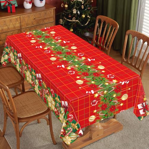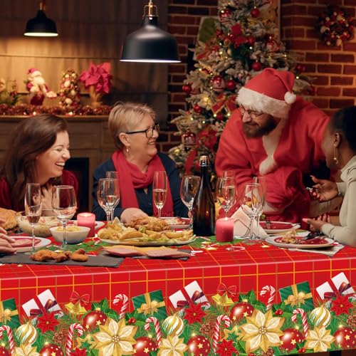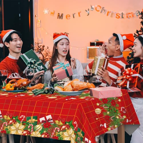 Premium Material: Made of waterproof plastic PE, non-toxic, lightweight and portable. The Christmas tablecloth is splash-proof, easy to wipe and clean if there’s milk, juice, or oil spills. Sturdy and non-tear-resistant, these Christmas Rectangle table cloths for Christmas holiday will keep your table protected against scratches and stains. Also, the table cloth can be easily folded and carried.