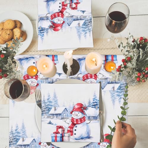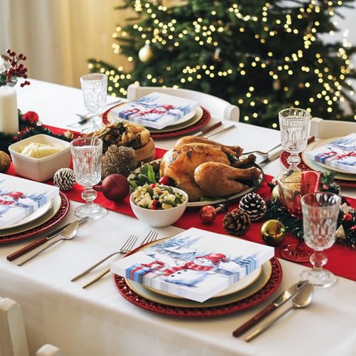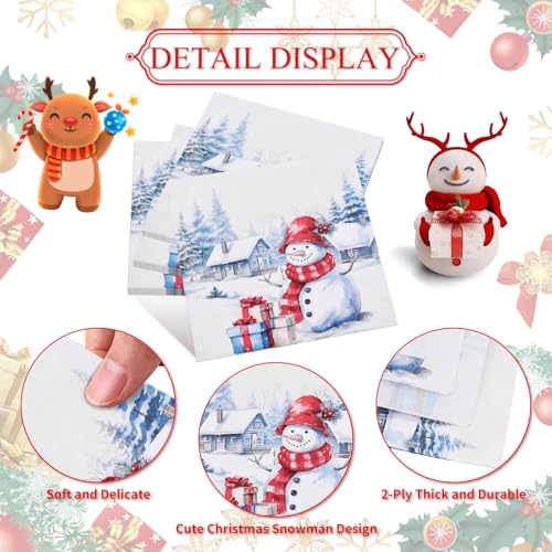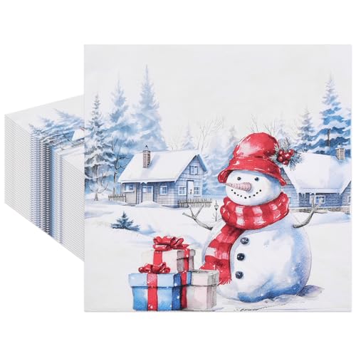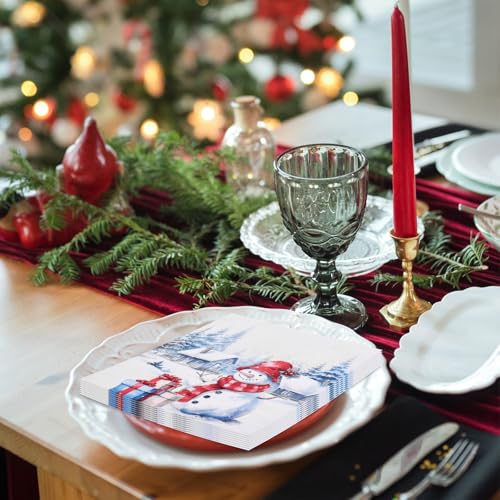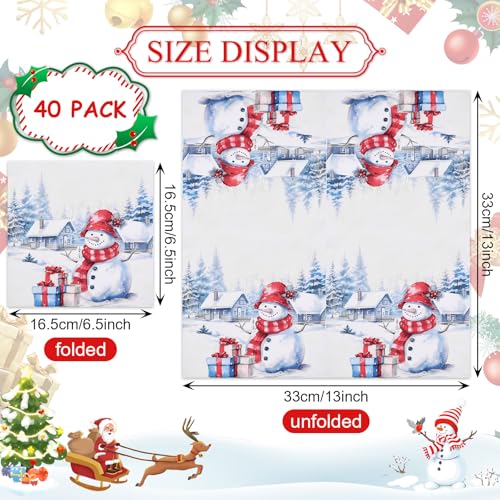 40 Pack Christmas Snowman Paper Napkins – 13 x 13 Inches Unfolded, Disposable Holiday Napkins with Snowman, Gift Boxes, and Winter Scenery Designs for Christmas Parties and Holiday Table Decorations