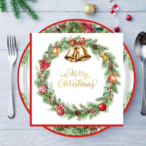 Complete Christmas Set: Elevate Your Christmas Celebration with our premium Christmas paper plates and napkins sets, featuring 20 durable 9-inch christmas plates and 20 christma napkins, perfect for festive gatherings.