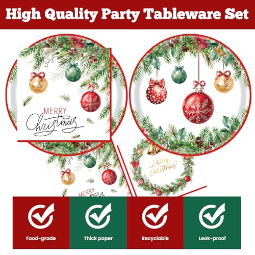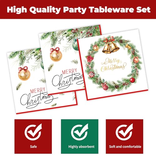 Premium Christmas Plates and Napkins: Our heavy-duty plates hold substantial food without bending, while the durable 2-ply napkins resist tearing, ensuring a mess-free dining experience.