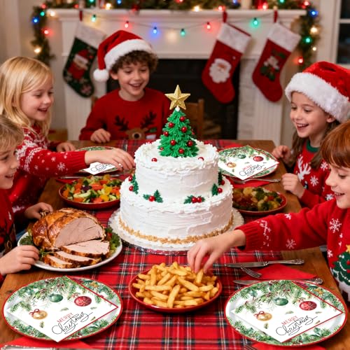 Versatile Holiday Use: Ideal for Christmas dinners, office parties, family gatherings, and other festive events, these holiday paper plates and napkins sets add a special touch to any occasion.