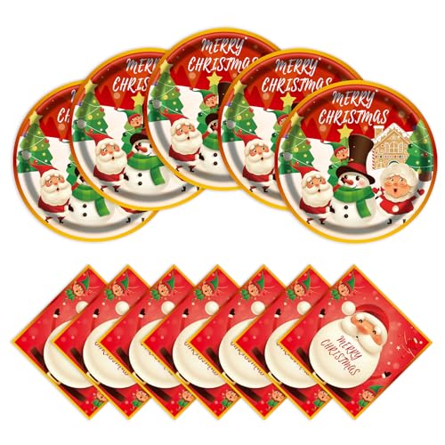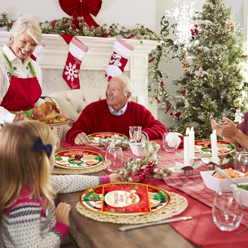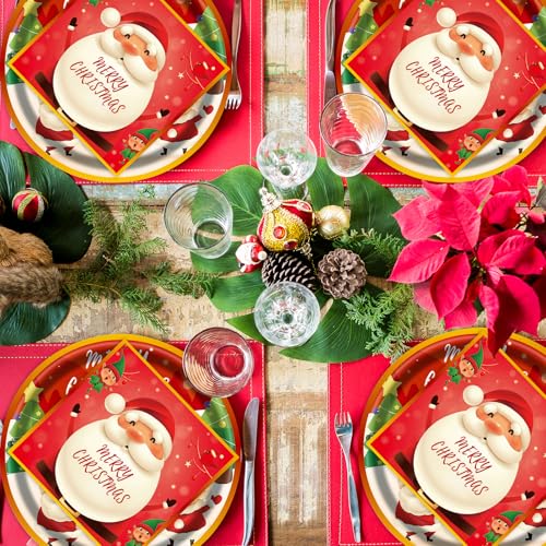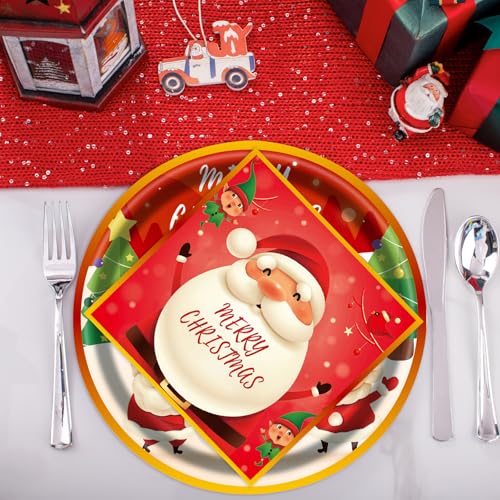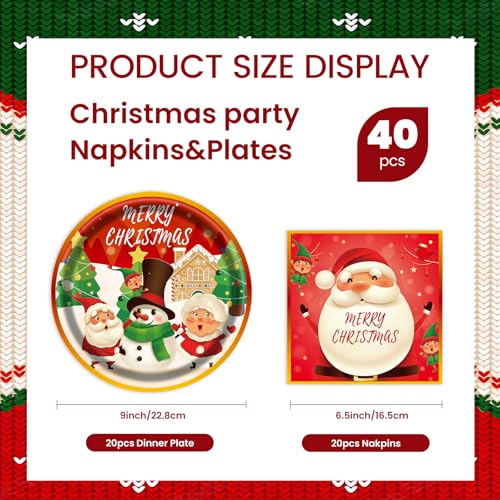 40pcs Christmas Paper Plates and Napkins Set, Christmas Party Supplies Disposable Holiday Santa Claus Tableware for Merry Xmas Winter Holiday Theme Party Decor,Serves 20