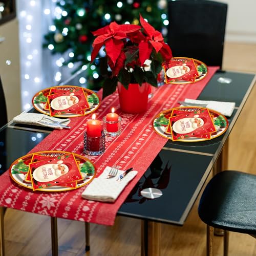 🎅【Christmas Paper Plate Set】: Package includes: 20x7inch Christmas paper plates and 20x 6.5 x 6.5 inch Christmas paper napkins, total 40 pcs, sufficient quantity to meet your party decoration needs