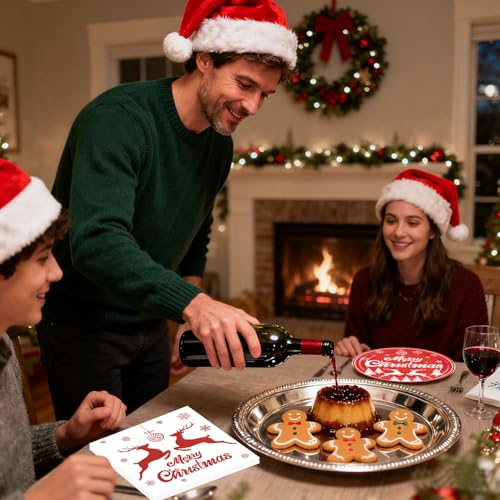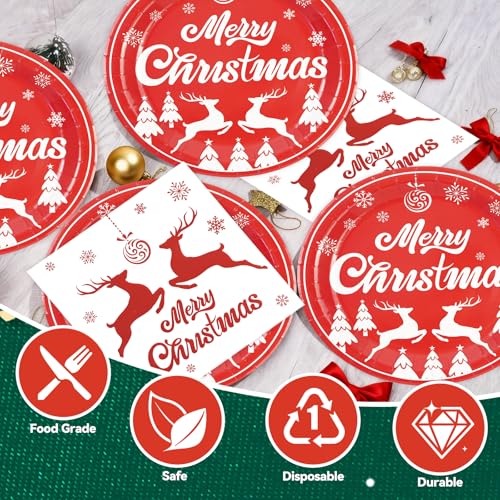🎄HIGH-QUALITY: Made from thick, disposable paper, these Christmas paper plates and napkins are sturdy enough to hold hearty meals while resisting oil and moisture. The soft, absorbent napkins ensure a comfortable dining experience.