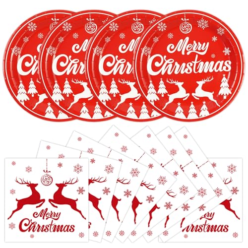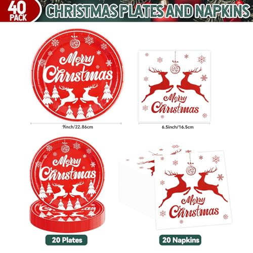 40PCS Christmas Party Plates and Napkins, 9 Inch Disposable Reindeer Dinner Plates Party Supplies for Merry Christmas Holiday Party Decoration