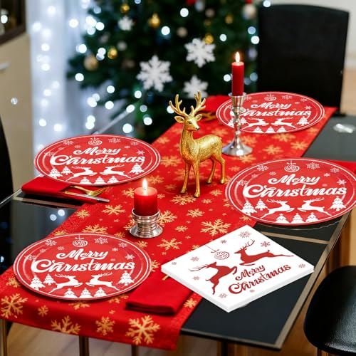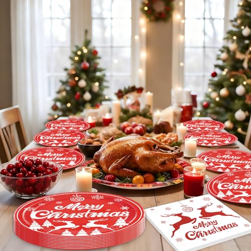 🎄PARTY SUPPLIES: Our festive Christmas paper plates and napkins feature a charming red and white reindeer design, perfect for holiday gatherings, family parties, or festive dinners. The scalloped paper plates add an elegant touch, making them ideal for both casual and themed celebrations.