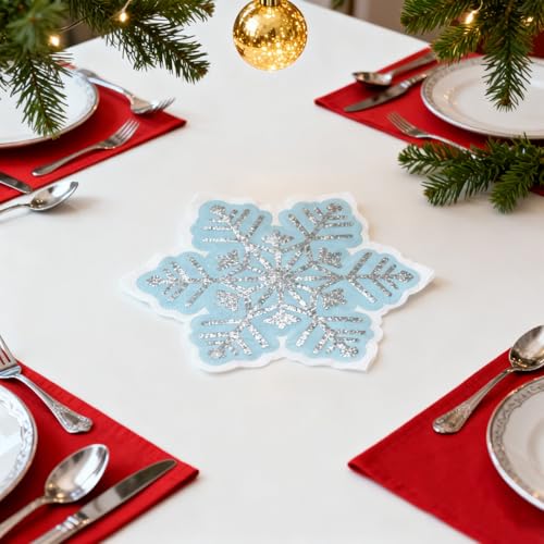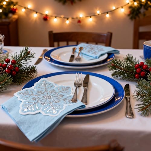 Elegant Snowflake Design Featuring a beautiful blue background with intricate silver snowflakes, these birthday napkins add a delicate and festive winter wonderland atmosphere to any celebration