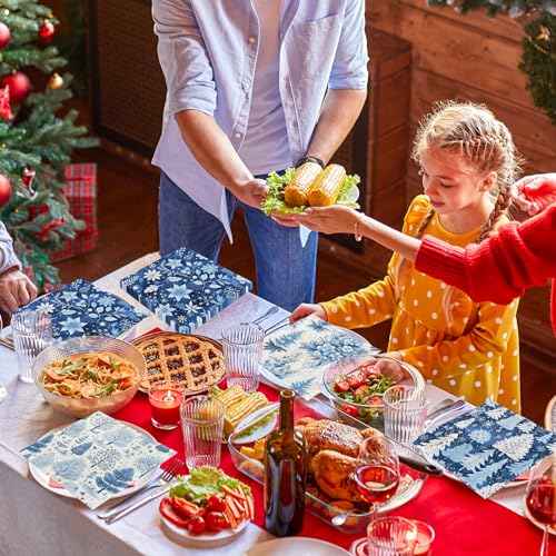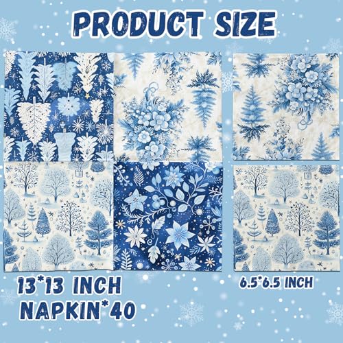 40pcs Winter Napkins Decorations,Blue Winter Christmas Napkins,Christmas Tree Xmas Reindeer Napkin for Winter Holiday Party Xmas Birthday Party Supplies