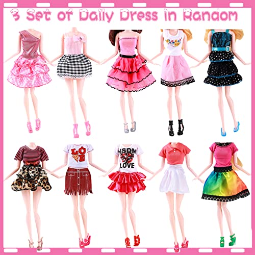 Contient toutes les tenues : le colis comprend à peu près tous les accessoires en tissu à cause poupées. Il comprend 15 robes colorées et tendance au hasard, 10 paires de chaussures de différents styles et 16 accessoires au hasard, peut répondre à tous les besoins de changer de vêtements à cause poupées.