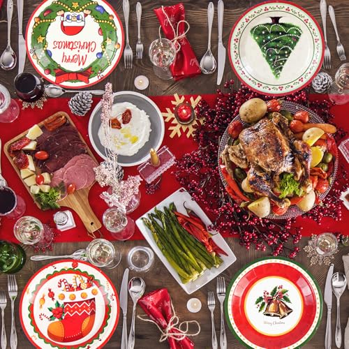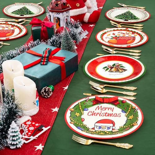 【Festive Designs】These christmas plates feature cute retro Christmas theme designs, including Santa Claus, Christmas tree, bells, Christmas stockings, etc. They add a touch of joy to your celebrations and create a cheerful atmosphere for your guests.