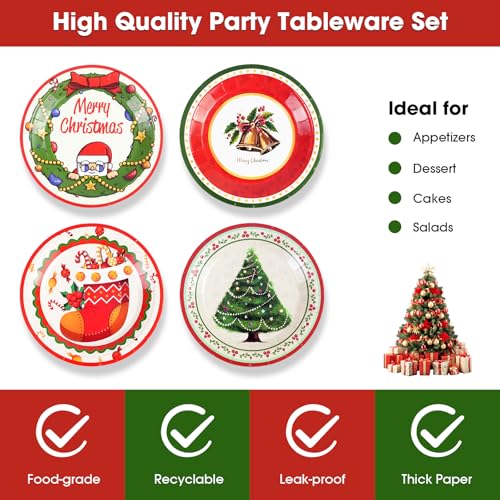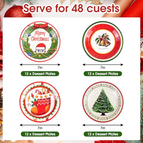 【Christmas Party Supplies】This Christmas party tableware set includes 7″ Christmas Paper Plates *48. 4 cute designs. Perfect for Christmas parties and gatherings.