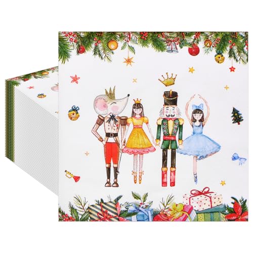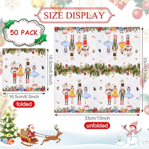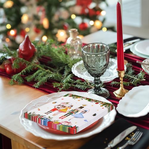 50 Count Christmas Ballet Napkins – Festive Ballerina and Holiday Gift Design Disposable Paper Napkins for Christmas Parties, Winter Entertaining, and Seasonal Table Décor