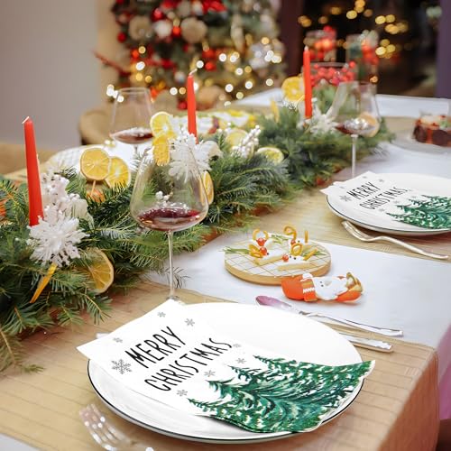What include: you will receive 50 pieces Christmas guest napkins, enough for your various uses and daily needs; the Christmas tree paper napkins can make your party more attractive.