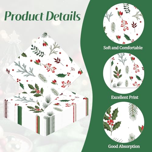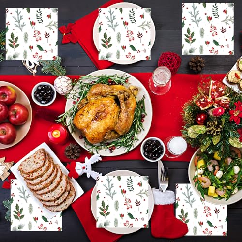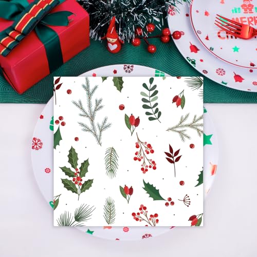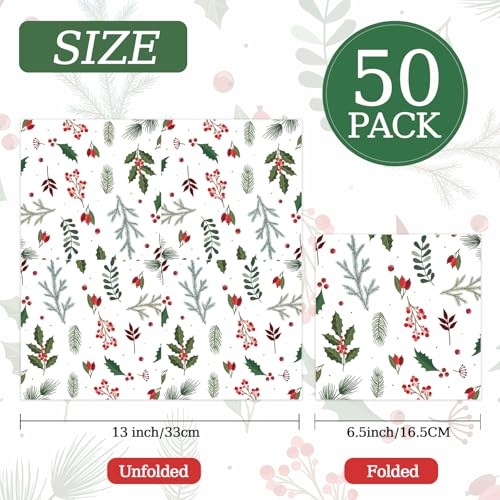 50 Pcs Christmas Napkins 13 x 13 Inches, Holly Berry Paper Napkins Winter Theme Disposable Cocktail Napkins for Holiday Christmas Party Decorations