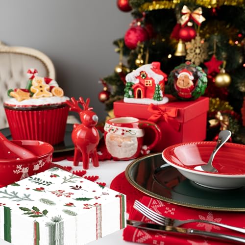 🌲Package Contents: Each pack includes 50 disposable christmas paper napkins(measure 13” x 13” when unfolded and 6.5” x 6.5” when folded), these christmas napkins meet all your entertaining needs, perfect for parties, dinners, and gatherings throughout the holiday season.