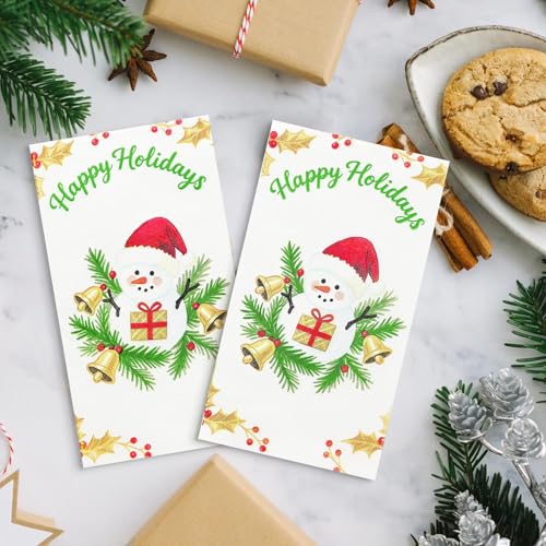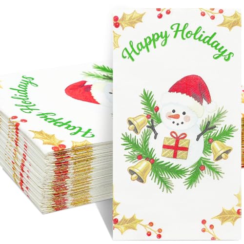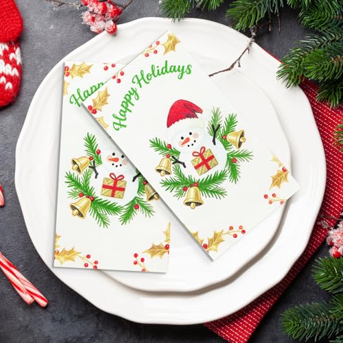 50 PCS Christmas Paper Napkins Snowman Pine, Guest Dinner Size Paper Napkins, 3-layer Greenery Dinner Hand Towels for Winter Holiday Home Kitchen Bathroom Party Supplies