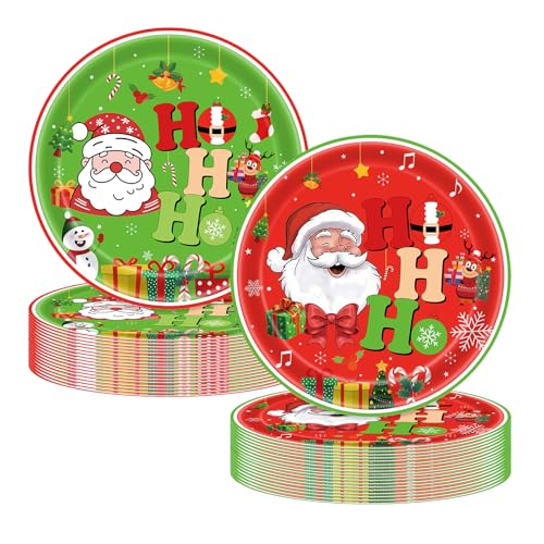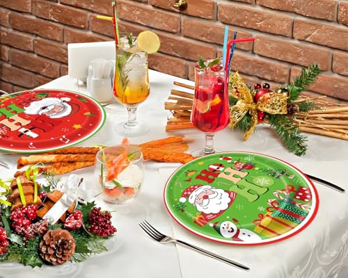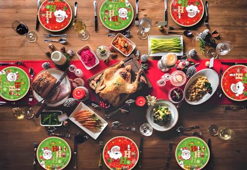 🎄CHEERFUL HOLIDAY DESIGN: Our 7-inch holiday paper plates feature classic Christmas motifs like Santa Claus, Christmas tree, snowman and festive patterns. The vibrant red and green colors add a merry touch, enhancing the holiday spirit at any Christmas-themed event