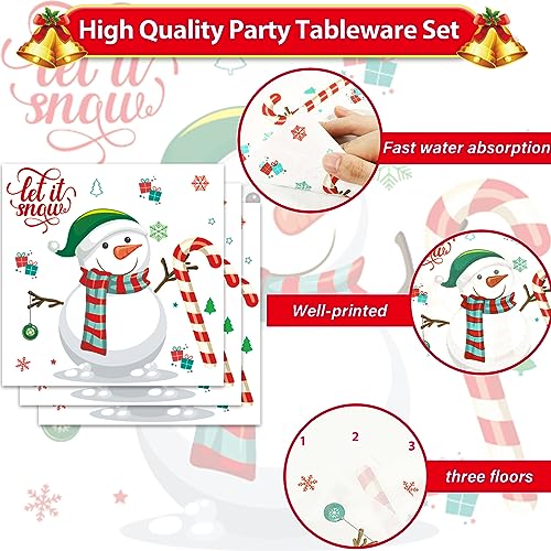 Merry Christmas Party Table Settings: These Xmas Guest Napkins Disposable party tableware kit can serve 50 guest at most, an enough quantity for a Snowman Theme big day especially .Serve dinner to guests in catering, buffet, potluck, events or daily meals.