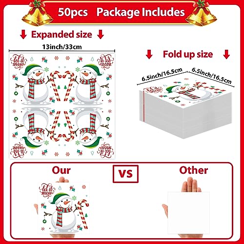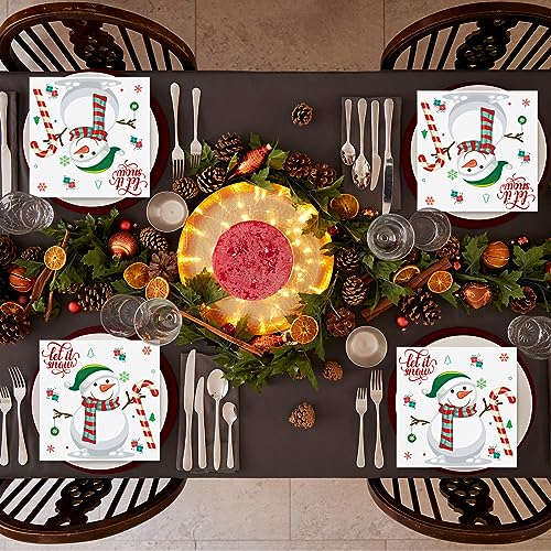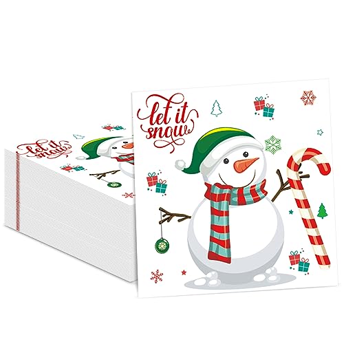 50pcs Christmas Guest Napkins 3 Ply Holiday Disposable Paper Pack Let it Snow Paper Luncheon Dinner Hand Napkins Snowman Theme Beverage Disposable Napkins for Xmas Party