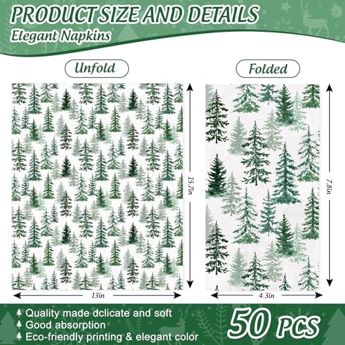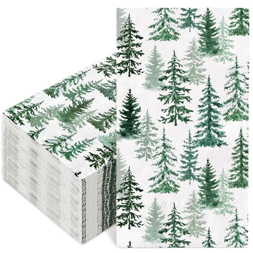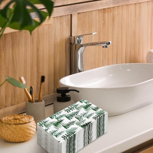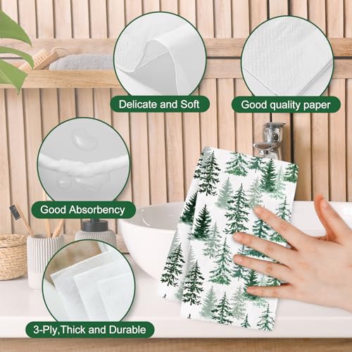 RUSTIC DESIGN: Featuring Christmas and winter theme, patterned with green pine trees in watercolor style, delicate and rustic, full of holiday atmosphere, great supplies for daily and party use.