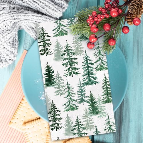 50Pcs Christmas Guest Napkins Disposable Watercolor Cedar Paper Napkins Winter Xmas Dinner Hand Napkins for Holiday Party Tableware Supplies