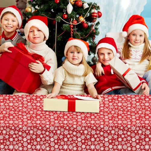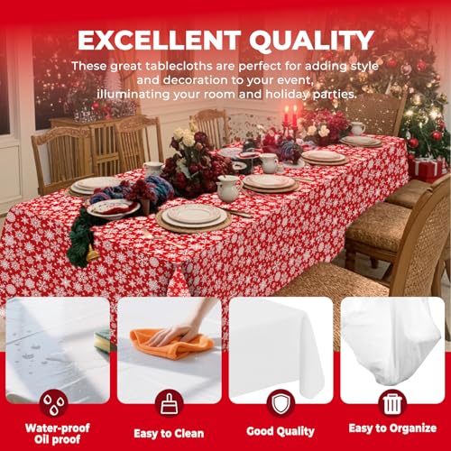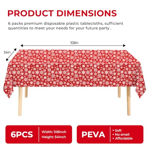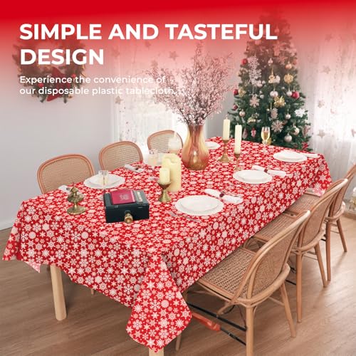 Save Cleaning Time: Made of disposable plastic, these red snowflake tablecloths can keep your table from stains caused by food, drink and more; What’s more, the surface is smooth and waterproof so that you can easily clean up stains, save your time and effort.