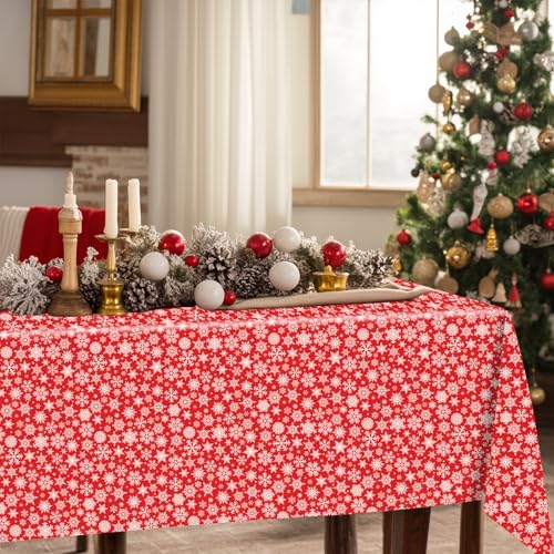 Wide Applications: Classic Christmas snowflake tablecloth with festive colors for your Christmas party’s cheerful atmosphere. suitable for all Christmas celebrations at home, office, indoor or outdoor party; use these table coverings for meal, buffet, picnic, lunch and other activities