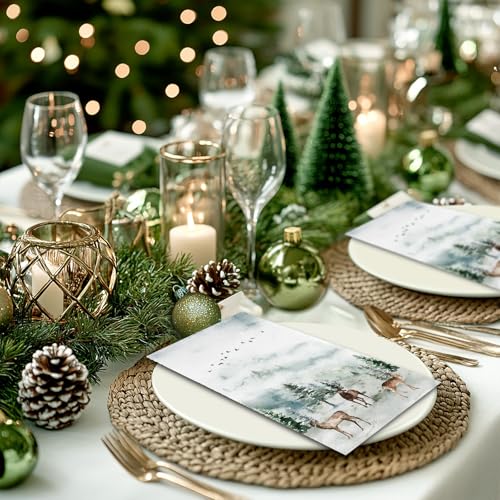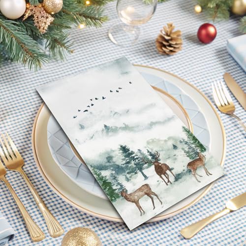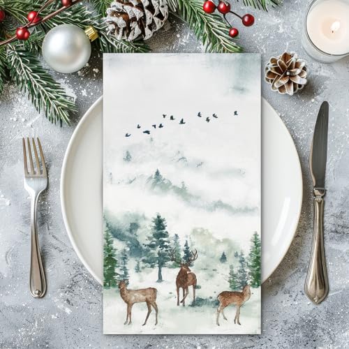 Elegant Design: These forest deer themed napkins are exquisite and elegant, and the watercolor style pine tree is very beautiful with unique colors, suitable for a wide range of scenarios. Using it to decorate your dining table will leave a lasting impression on your guests.