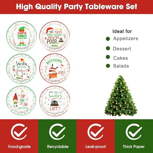 Package Includes: Funny Christmas themed paper plate set includes 60 plates printed with playful and adorable Christmas designs, featuring 6 unique patterns to add joy to your holiday gatherings
