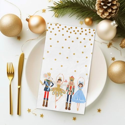 Elegant design: These nutcracker napkins are exquisite and elegant, with cute and interesting nutcracker patterns paired with scattered golden polka dots, making the picture more unique and creating a strong Christmas atmosphere. They are suitable for a wide range of scenarios. Using it to decorate your dining table will leave a lasting impression on your guests.