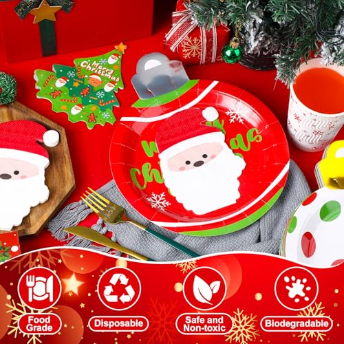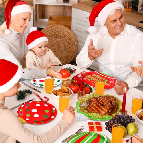 Vibrant Christmas Design: our Christmas party decorations come alive with red green colors and different patterns, including waves, stripes, dots, and swirls; These disposable dinnerware set brings the nice tone for Christmas parties and themed events