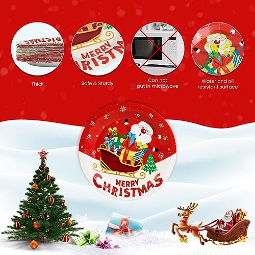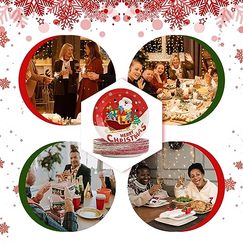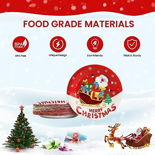 7 Inch Christmas Party Paper Plates – Disposable 50 pcs with Christmas Tree, Santa Claus Designs for Holiday Dinner & Dessert Parties