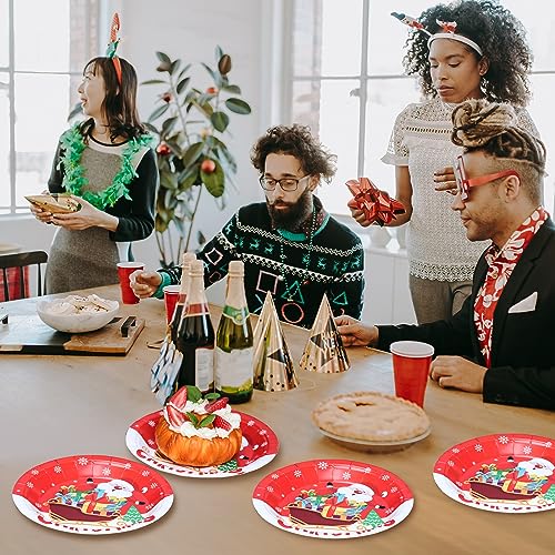Christmas party paper plates: Designed with Christmas popular elements.Our unique Christmas set will make your family and friends have a happy Christmas party.The plates are waterproof and grease proof, you can use them to serve any food you want.
