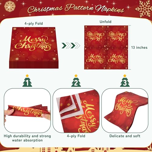 【Christmas Disposable Plates and Napkins】This christmas party plates are made of sturdy paper, thick and not easy to tear, resistant to cutting and not easy to leak. Perfect for serving cakes, sandwiches, salads, fruits and snacks at parties. It is very suitable for both assembling dishes and main courses. The napkins consists of four layers, which are very tough and soft with high absorbency. Provide guests with a great dining experience!
