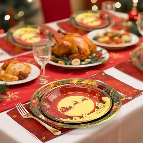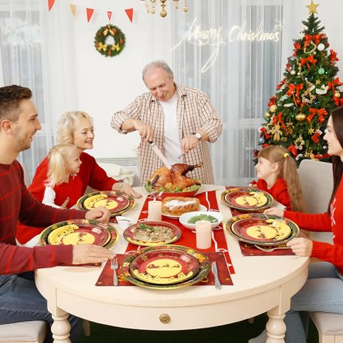 【Xmas Themed Party Decorations】This Christmas plates and napkins set is perfect for a variety of occasions: winter birthday parties, family camping, barbecue gatherings, celebratory dinners, snow-themed parties, winter party decorations, holiday celebrations, Christmas-themed parties, and all kinds of festive gatherings. It adds a vibrant holiday atmosphere to any gathering!