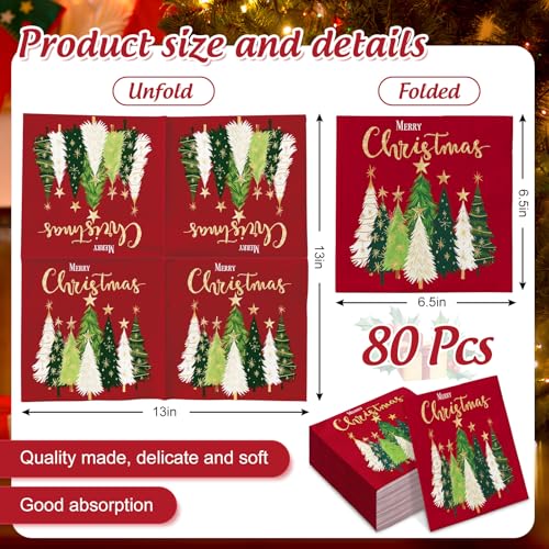 There are 80Pcs Christmas theme paper napkins with Christmas tree design for you. They will be suitable to be served as party supplies for the sufficient quantity and decorative nature.