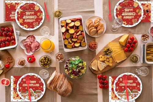 【HIGH QUALITY】Our Christmas-themed tableware are made of thickened high quality paper, non-toxic, odor free, heat resistant and durable, heat resistant and durable. The napkins are made of food grade water-based ink, highly absorbent and very skin-friendly, giving you a pleasant dining experience!
