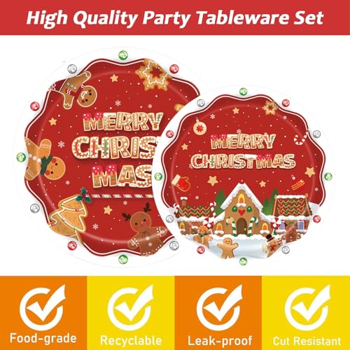 This party dinnerware set is designed with gingerbread man house signs, suitable for various occasions, like Christmas theme birthday parties, baby shower, wedding party, picnics, New Year holiday and other-themed events.