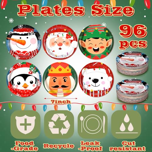 Sufficient Quantity: our package includes a generous set of 96 brightly colored Christmas paper plates; This substantial quantity caters to large occasions without running out mid event; The green and red disposable plates are a suitable size for desserts, appetizers, and other party foods, ensuring you enjoy your festive delicacies