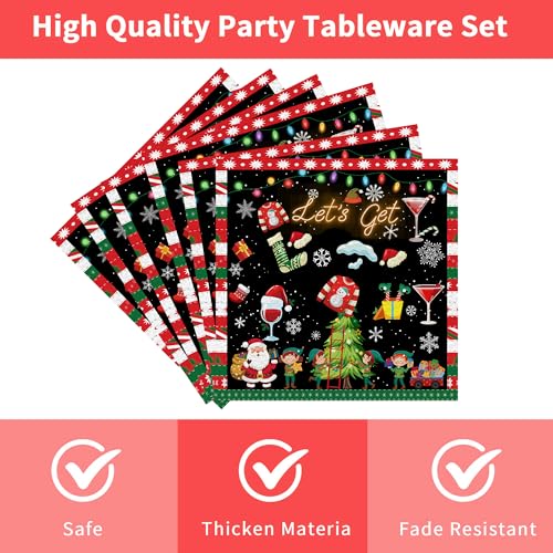 Playful Holiday Design: Decorated with elves, Santa, lights, and cocktails, this set adds humor and festive cheer, making it the centerpiece of your Christmas party décor