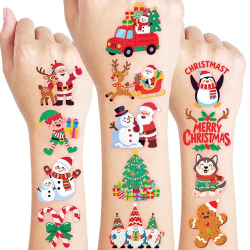 96 PCS Noel Christmas Xmas Santa Pre-Cut Temporary Tattoos for Kids | Cute Themed Birthday Party Favors, Supplies, Decorations, Christmas Fake Tattoo Stickers, School Rewards Gifts for Boys & Girls