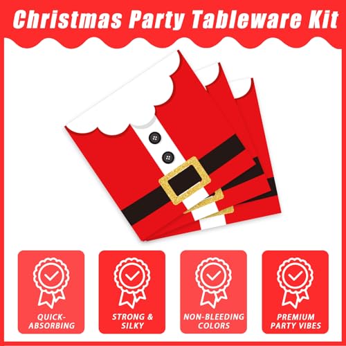 PERFECT CHRISTMAS PARTY COMPLEMENT: These Christmas theme party paper plates and napkins are the perfect complement to your merry Christmas party decorations! They can perfectly fit well with your other winter party favors such as Christmas party tablecloths, Christmas party banners, Christmas party cutouts, Christmas party backdrops, and Christmas party props
