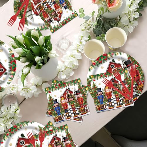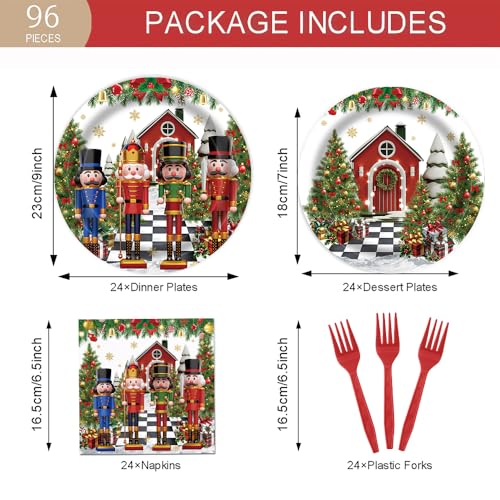 【Serve 24 Guests】This christmas party supplies set includes 24 plates (9inch), 24 plates (7inch), 24 napkins (13inch), 24 forks.
