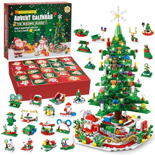 Advent Calendar 2024 Christmas Tree Building Toy Magical Christmas Tree Building Adventure LED Lights for Kids & Adults Countdown to Christmas Fun- Perfect Creative Gift