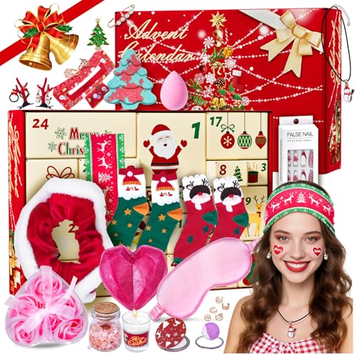 Advent Calendar 2025 for Adult Women, Christmas 24 Pieces Fashion Jewelry Bath Sets Countdown Gifts Surprise Gift Baskets for Mom Wife Girlfriend Teenagers