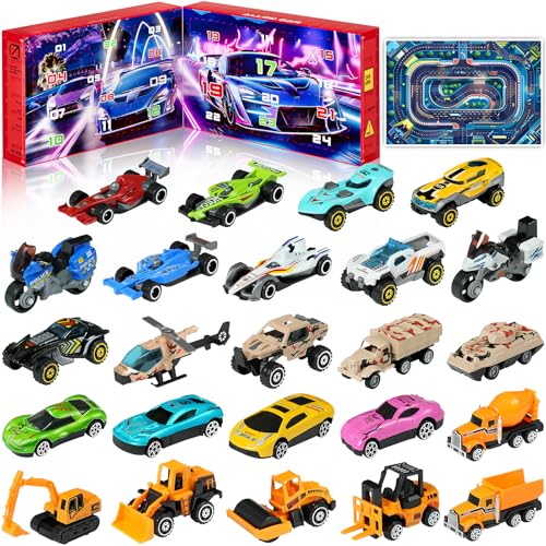 Advent Calendar 2025 for Kids Stocking Stuffer Toy Cars with 24 Different Alloy Car Set Tandis a Play Mat Christmas Gifts for Boys and Girls