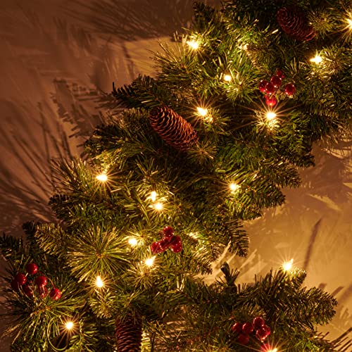 Éclairage intégré : pré-câblé avec 50 lumières LED fraises offrant un éclairage blanc chaud avec 8 fonctions minuteur intégré (6 heures allumé/18 heures éteint). La couronne codicille allumée même si une animosité brûle, se casse ou se desserre. Fonctionne avec 3 piles AA (non incluses).