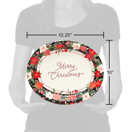 Make your Christmas celebration more beautiful with holiday floral dinner plates! Each brightly illustrated dinner plate features a colorful border of poinsettias and holiday greenery around a ‘Merry Christmas’ message. With a sturdy construction and a deep beveled edge, these large oval dinner plates can handle all the savory foods of the season, including turkey, ham, potatoes, gravy, veggies and more! Plates are disposable for quick and easy cleanup when your festive feast ends. They’re great for leftovers, too! The bulk party goods package includes 36 large plates — great for stocking up or sharing at large gatherings! Pair with matching holiday floral party supplies for gorgeous table decor! American Greetings offers exceptional greeting cards, gift wrap and celebration products so you can connect in ways that fit your personality and authentic style!