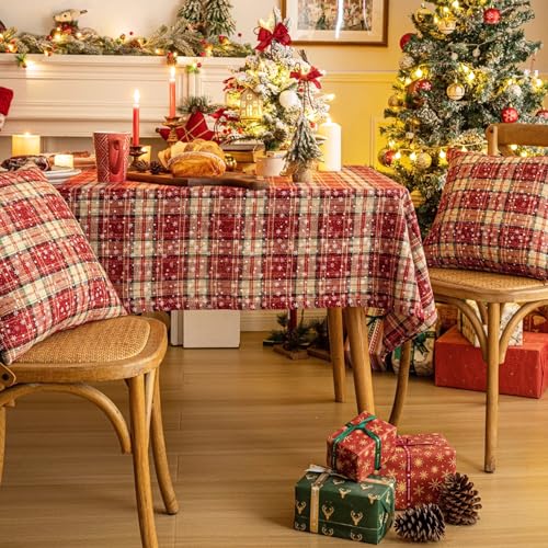 AQOTHES Red Plaid Snowflake Christmas Tablecloth 60×104, Tartan Table Cloth Decorations, Winter Holiday Tablecloths for Rectangle Tables Parties Dining Farmhouse Kitchen Decor